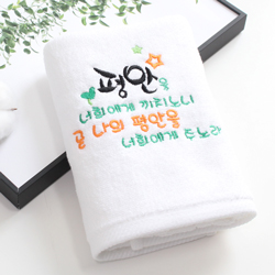 선물용 MADE IN KOREA 고급 자수수건 입니다. 감사의 마음을 말씀타올로 전해보세요.